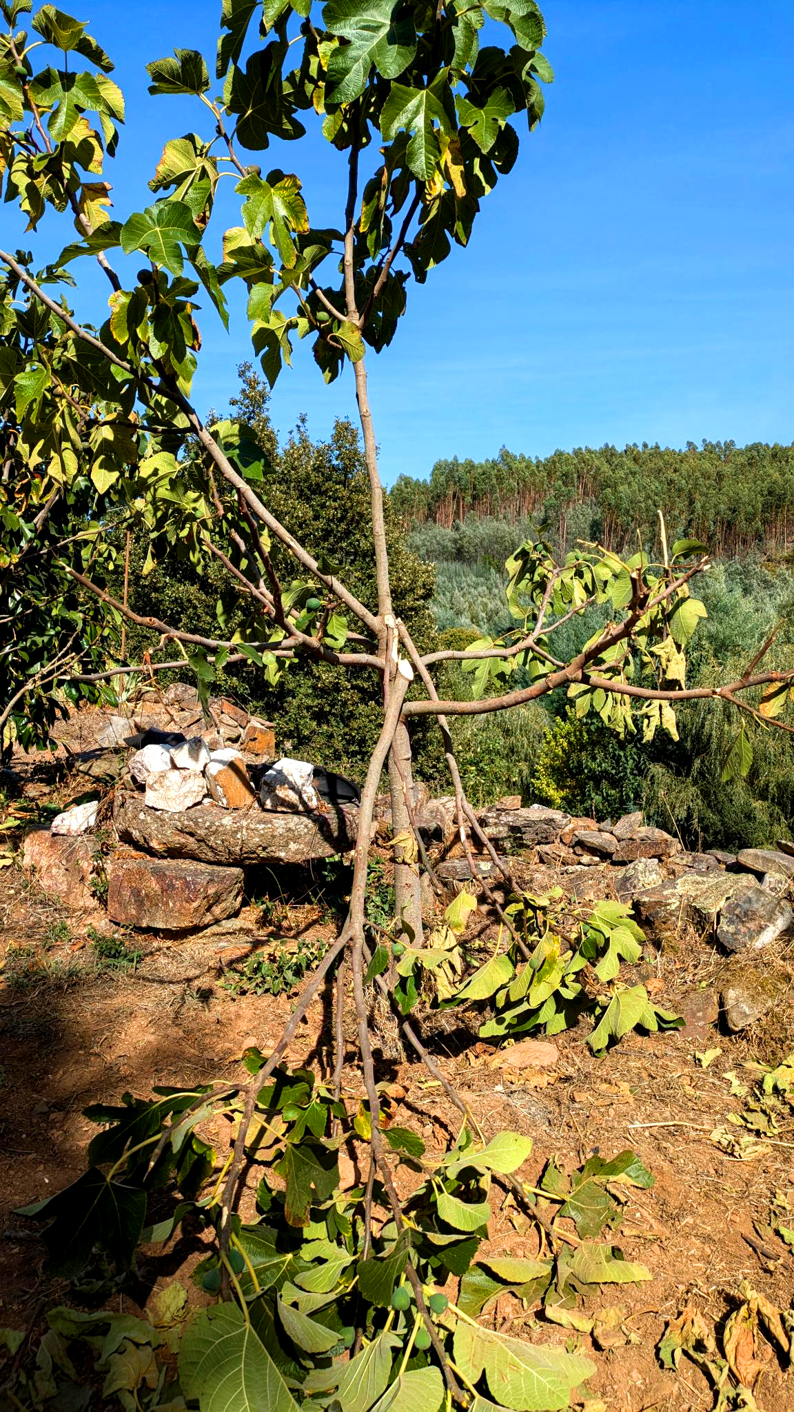 Im vergangenen Jahr berichteten wir, dass sich ein im Jahr 2018 gepflanzter Feigenbaum zu entwickeln begann und in seine Kraft kam. In diesem Jahr hat er es wohl übertrieben: Er steckte all seine Kraft nicht nur in sein Höhenwachstum sondern vor allem in die Äste, die nun zu schwer wurden. Einige davon brachen unter ihrer eigenen Last am Stamm ab.