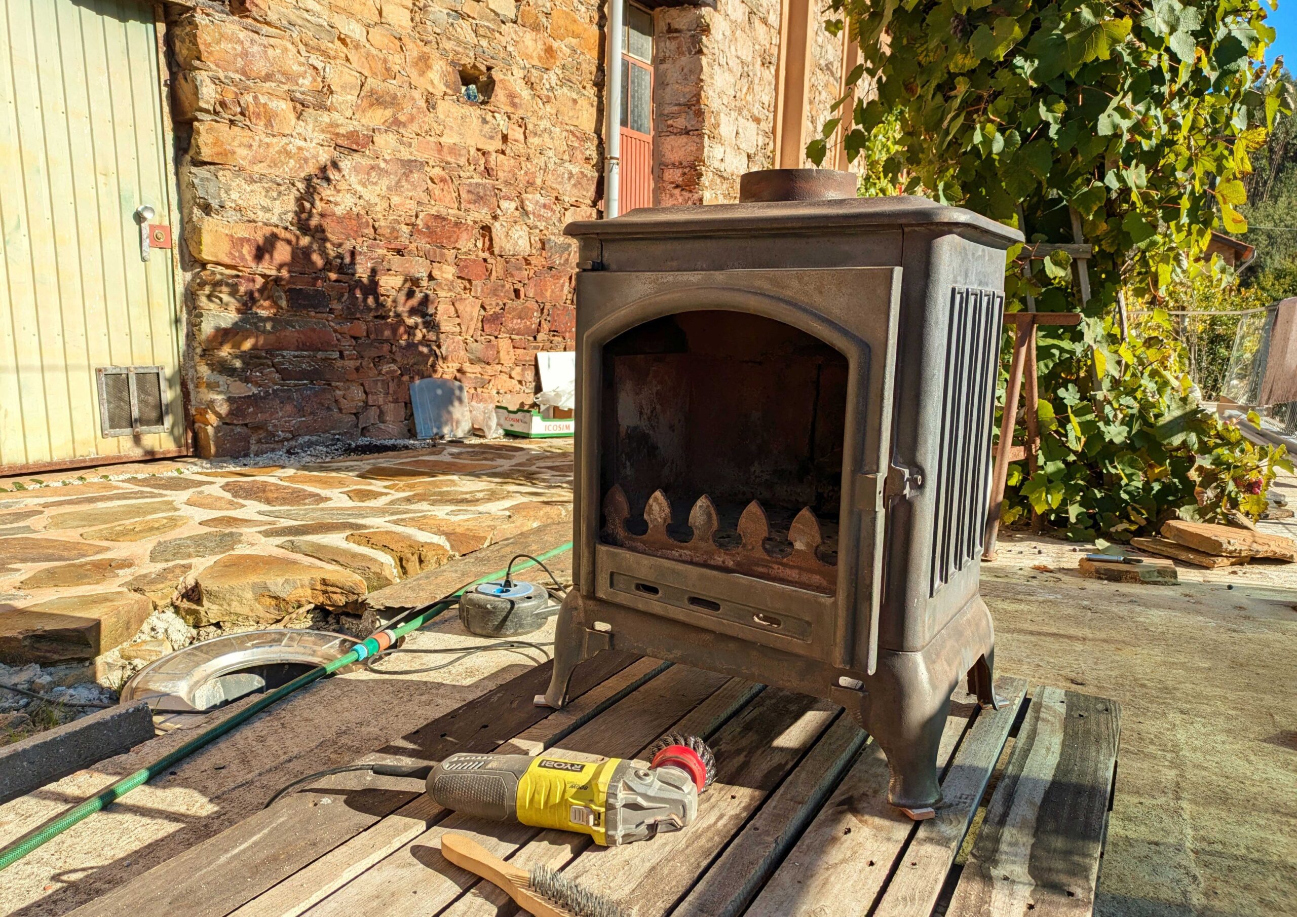 Vor einiger Zeit haben wir von Bekannten einen gusseisernen Kaminofen erstanden, der in gutem Zustand, aber voll verrostet war.