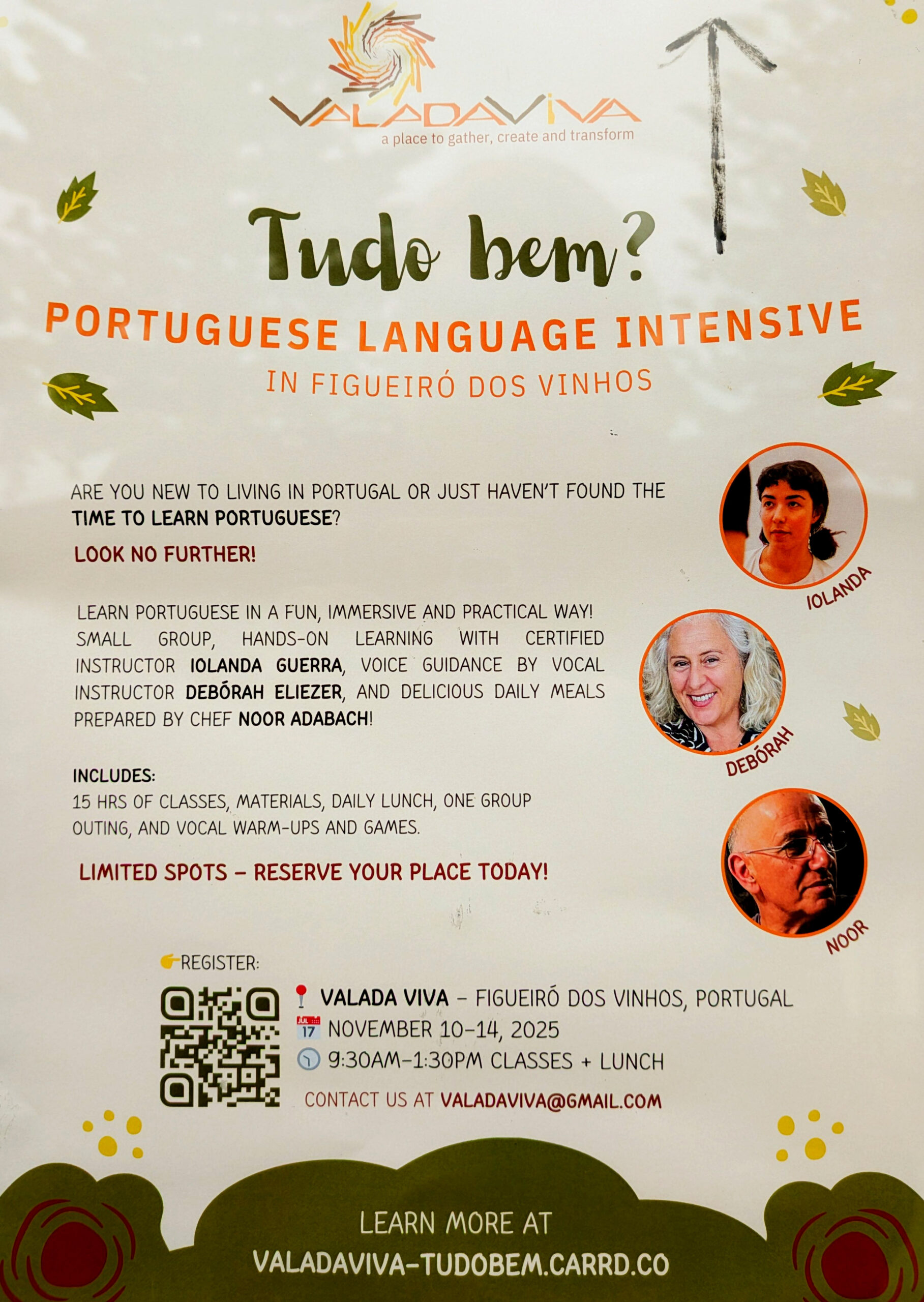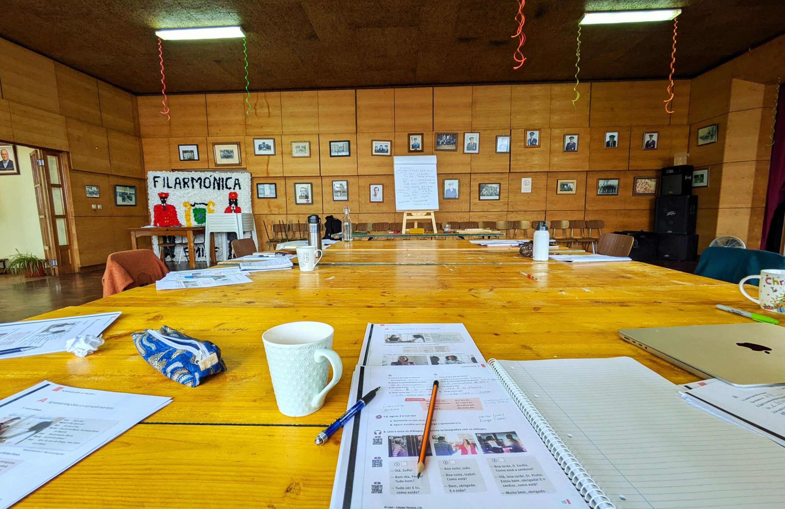 Der Intensivkurs Portugiesisch findet in der Philharmonie von Figueiro dos Vinhos statt. Die Lehrerin kommt aus Lissabon, die Schüler, die unterschiedlich lange in Portugal leben, kommen u. a. aus den Niederlanden, Israel, Frankreich, Deutschland, Schottland und der Schweiz.